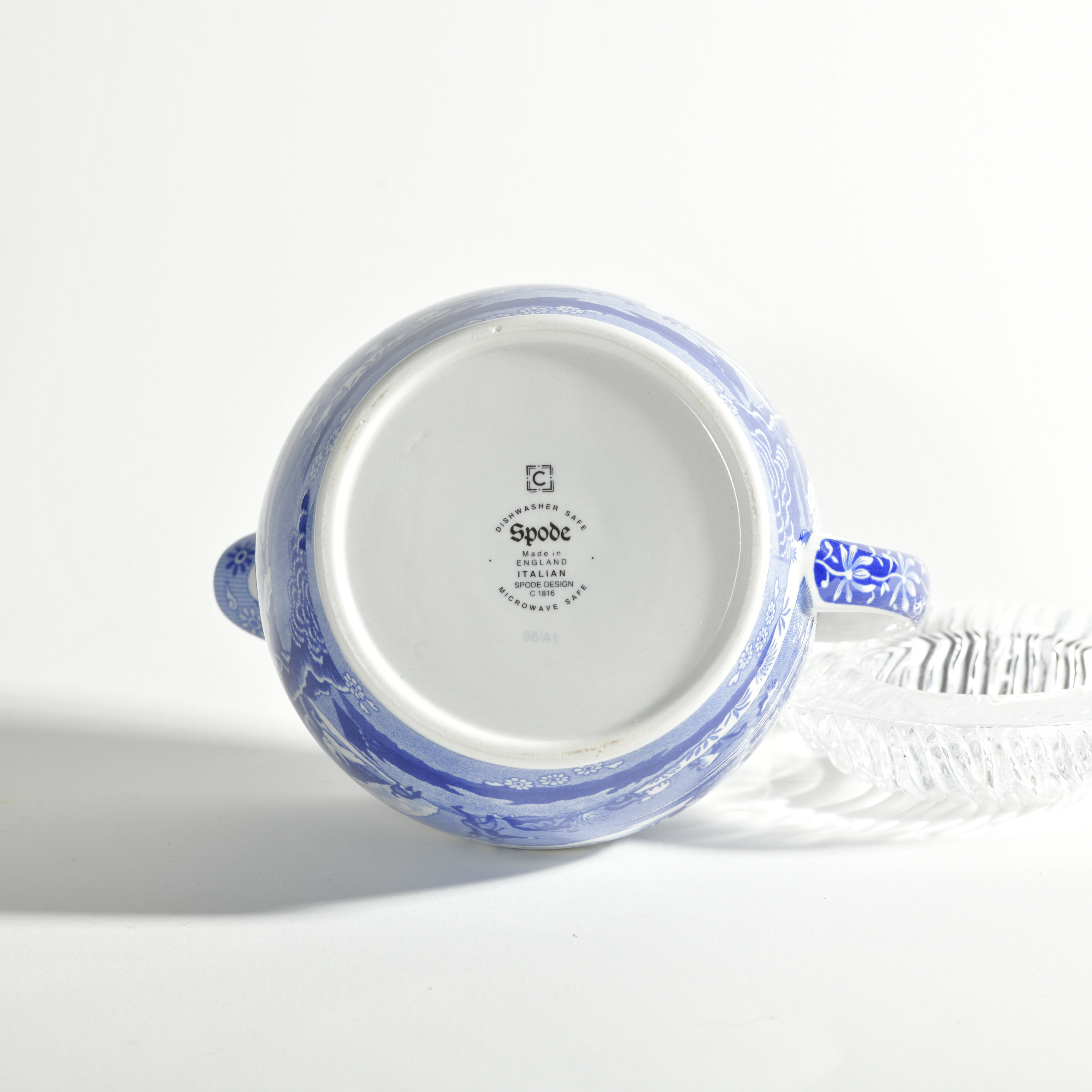 Blue Italian was first launched by Josiah Wedgwood II in 1816. This uses the technique of blue under-glaze printing to create this iconic pattern.