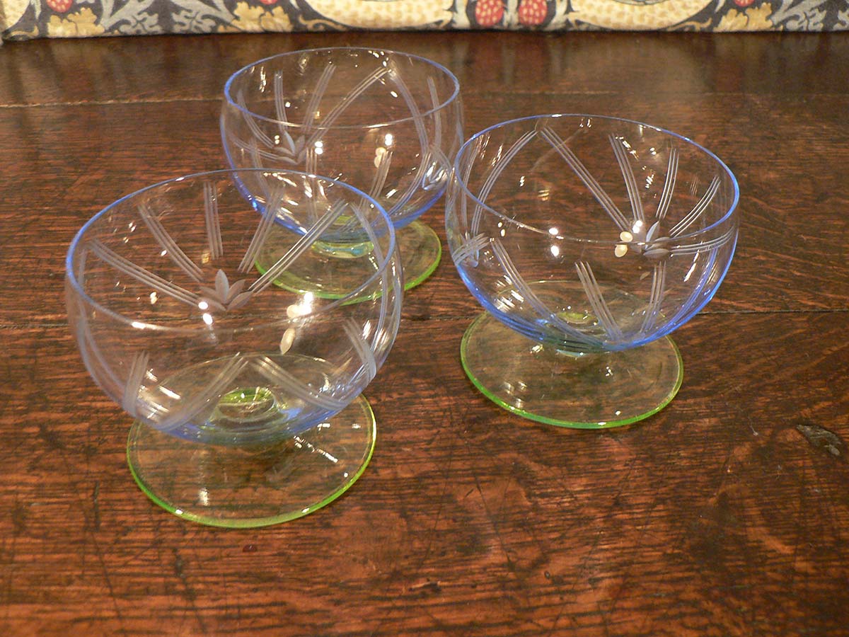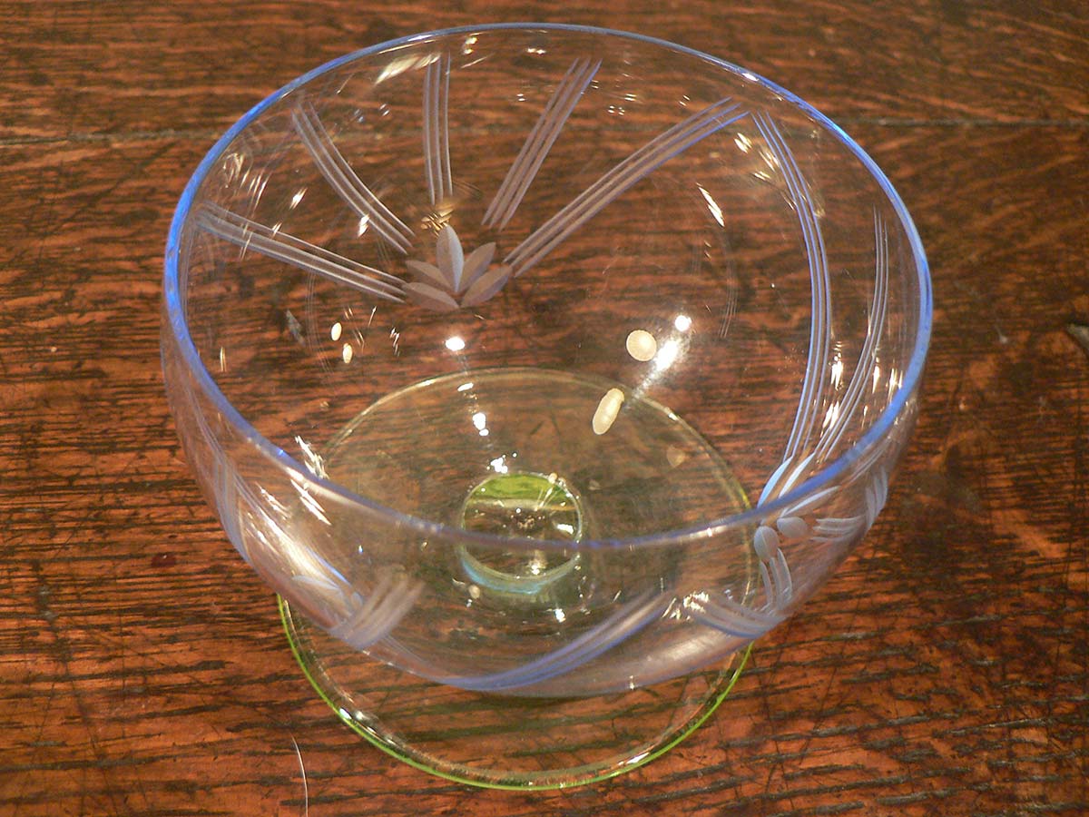 An amazing transformation under UV light! Even under regular light, you can see the blue glass cup with a tinge of green on the base.