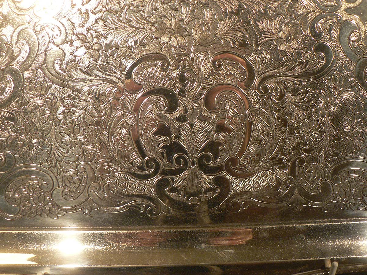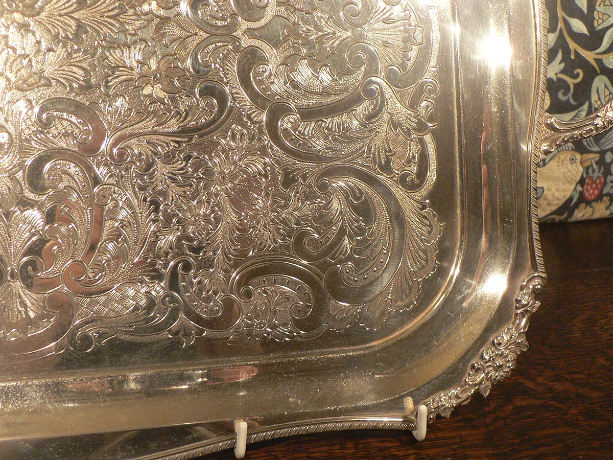 An English Silver Plate twin-handled serving tray by Viners of Sheffield. Decorated with chasing to main surface.